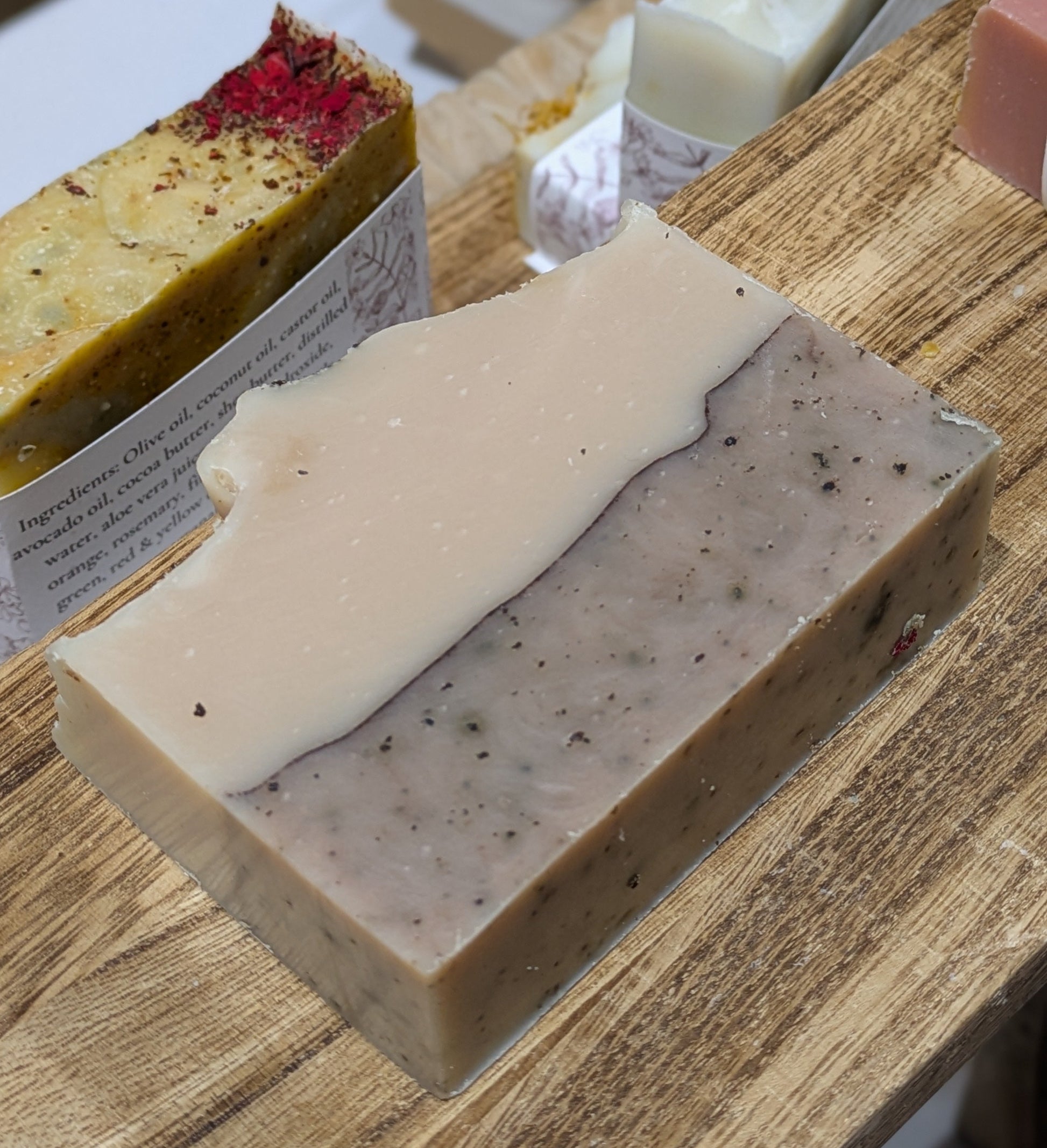 Ingredients: Olive oil, coconut oil, castor oil, cocoa butter, avocado oil, distilled water, brewed chai, coconut milk, sodyum hidroxide, cardamom, ginger, nutmeg, cinnamon, clove & black pepper essential oil blend. cocoa powder, chai leaves.