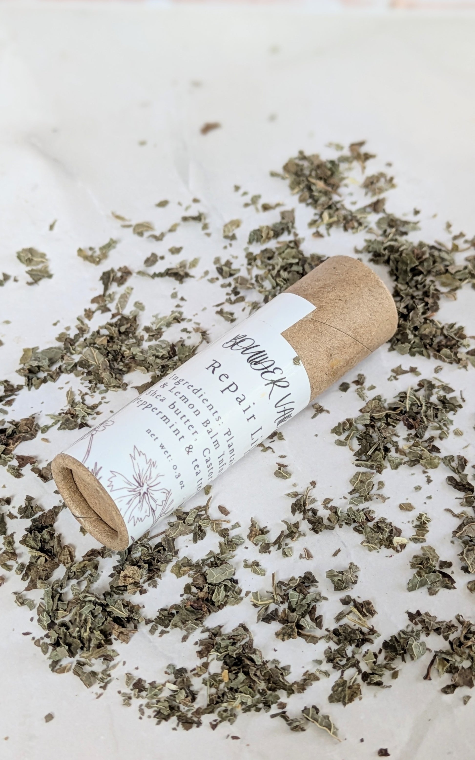 Made in brown kraft pushup tubes that are compostables they are near twice the size of a standard lip balm tube.